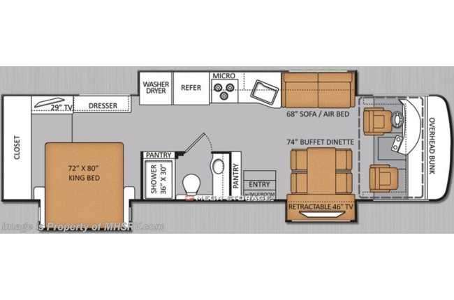 Hardwood raised panel cabinet doors Solar & privacy shades - living area Beauflor residential linoleum throughout Halogen ceiling lighting Hardware w/nickel finish Soft touch vinyl ceiling Leatherette euro-recliner w/integrated ottoman (33.2 only) Leatherette hide-a-bed sofa w/air mattress Dream Dinette w/one touch sleeper Thor Motor Coach's Motorhome mud-room w/access in entry Thor Motor Coach's Adapt-a-room flexible room system (bunk beds, sofa/wardrobe/open storage) (33.3 bunkhouse only)